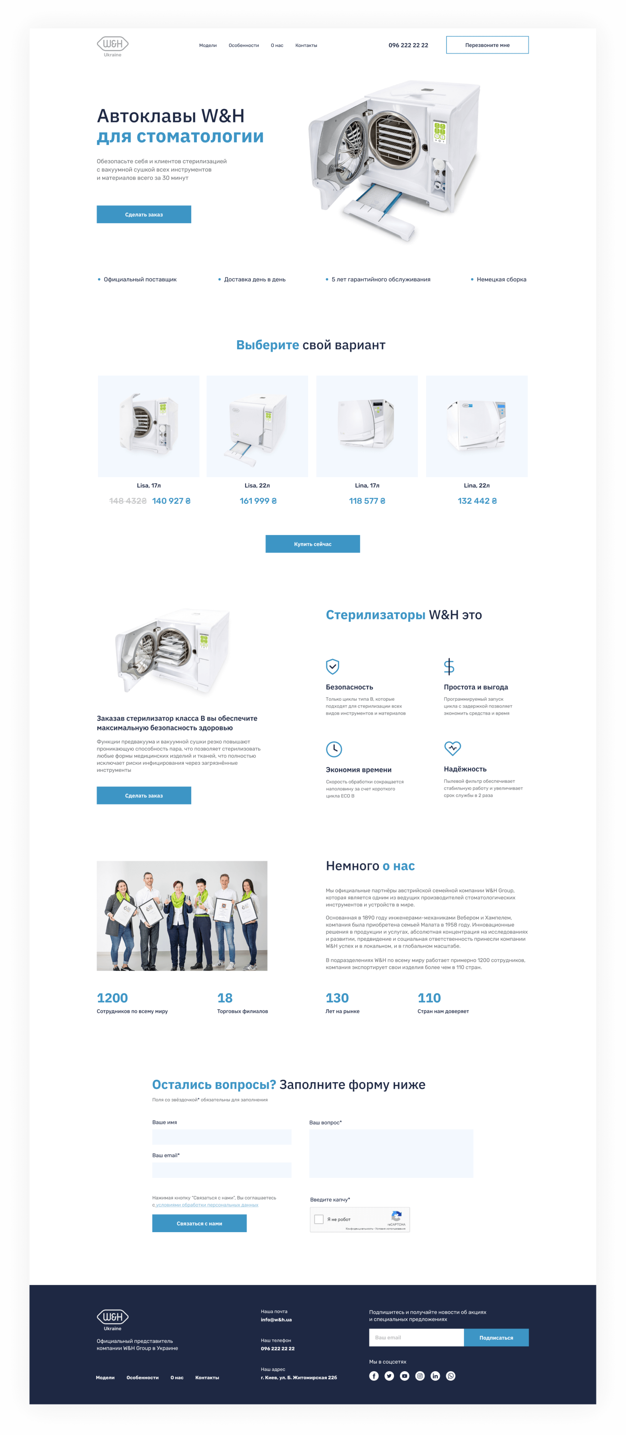 Создать лендинг на тему автоклавов (стоматологических стерилизаторов), спроектировать форму заявки с разными состояниями, придумать шаблон отзыва для соцсети